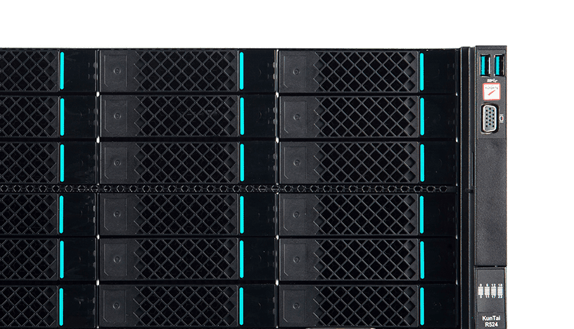 KunTai R524 存储型服务器是PA视讯集团数码基于鲲鹏处理器推出的新一代 ARM数据中心服务器。。。主要面向存储业务,,,,具有海量存储、、、高性能、、、、低功耗以及易扩展的特点,,,适合为大数据分析、、、软件定义存 储等应用场景的工作负载进行髙效加速。。
